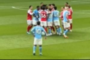體育資訊04月20日訊 英超第33輪,曼城主場(chǎng)2-1戰(zhàn)勝阿森納。比賽第83分鐘,加布里埃爾與哈蘭德發(fā)生沖突,隨后兩隊(duì)球員都圍了上來(lái),場(chǎng)面一度十分混亂。